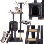 Ansamblu de joaca pentru pisici, cu loc pentru zgariat, ascuns, culcus, mingi, 145cm, grafit