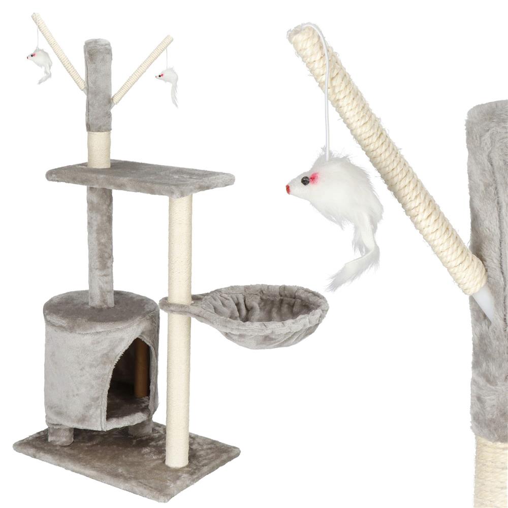 Ansamblu de joaca pentru pisici, cu loc pentru zgariat, ascuns, culcus, soricei, 108cm, gri