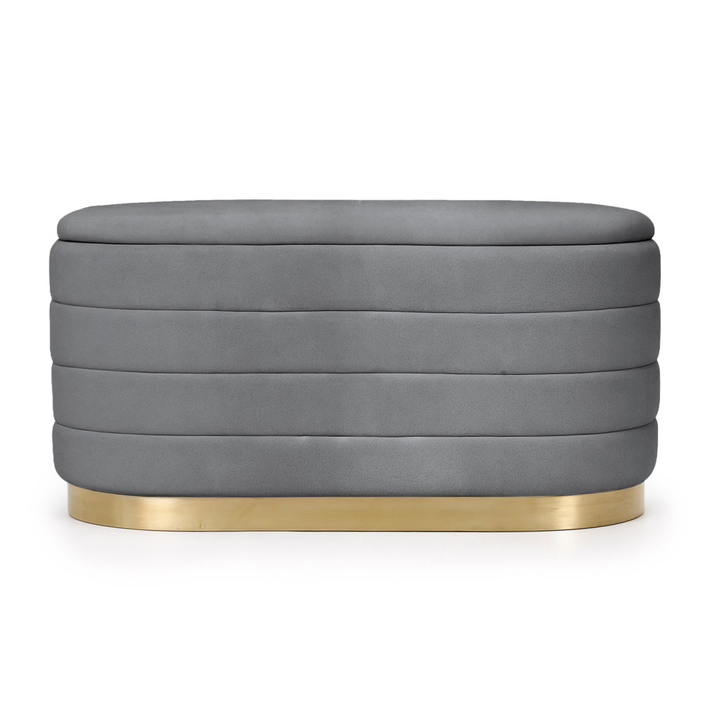 Bancheta tip puf cu depozitare, tapiterie velur, 80x42x42 cm, gri