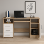 Birou ANA pentru calculator, cu 3 sertare si 1 usa, 124x52x74 cm, stejar sonoma si alb