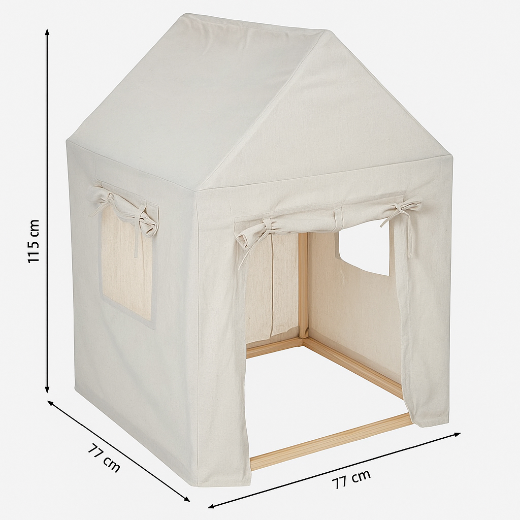 Casuta copii Atmosphera Safari, lemn de pin si panza textila, 77×115 cm, bej