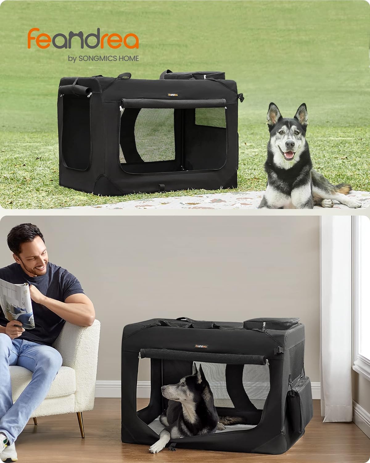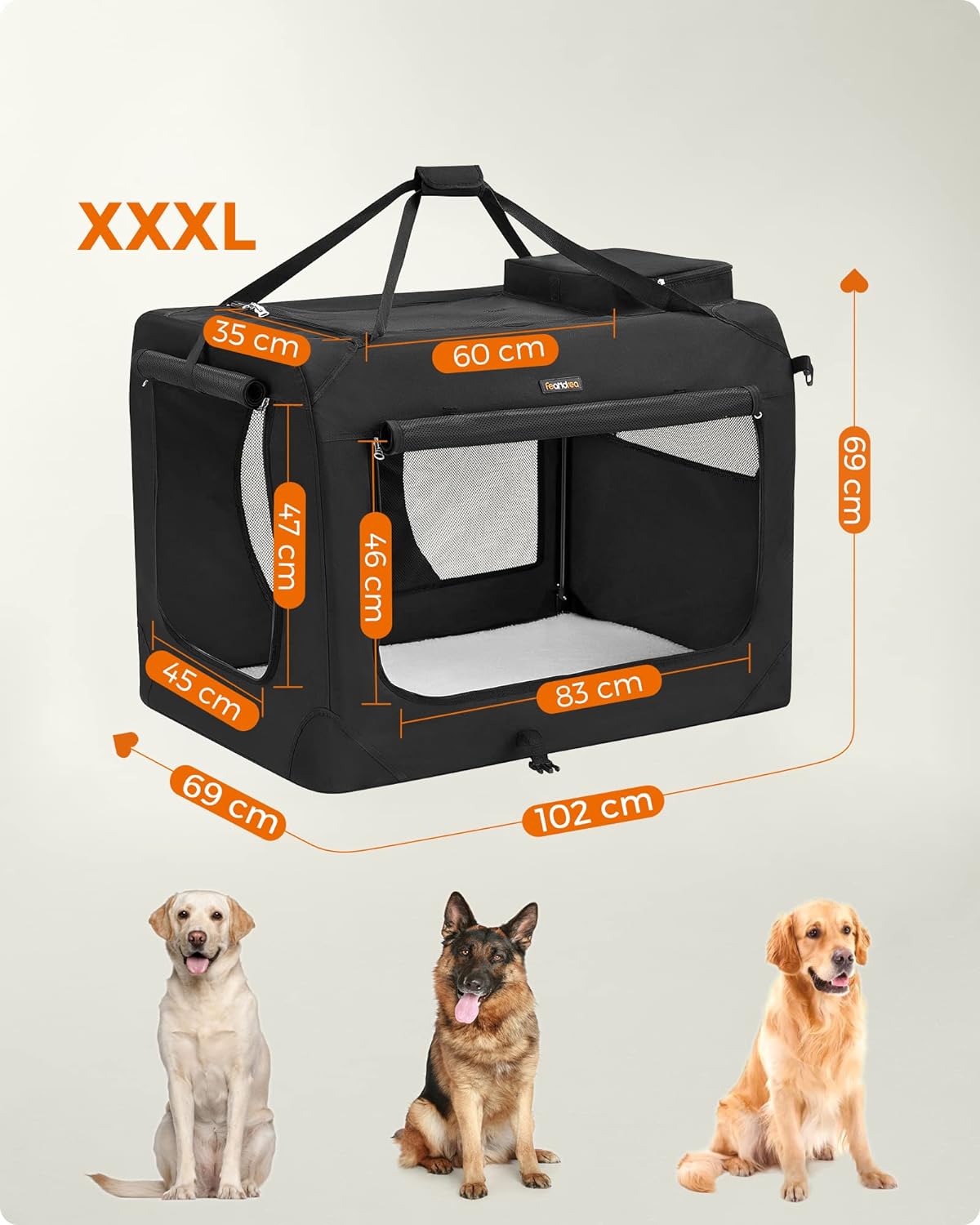 FEANDREA Geanta transport animale de companie, pliabila, din material textil, marime XXL, 102x69x69cm, negru