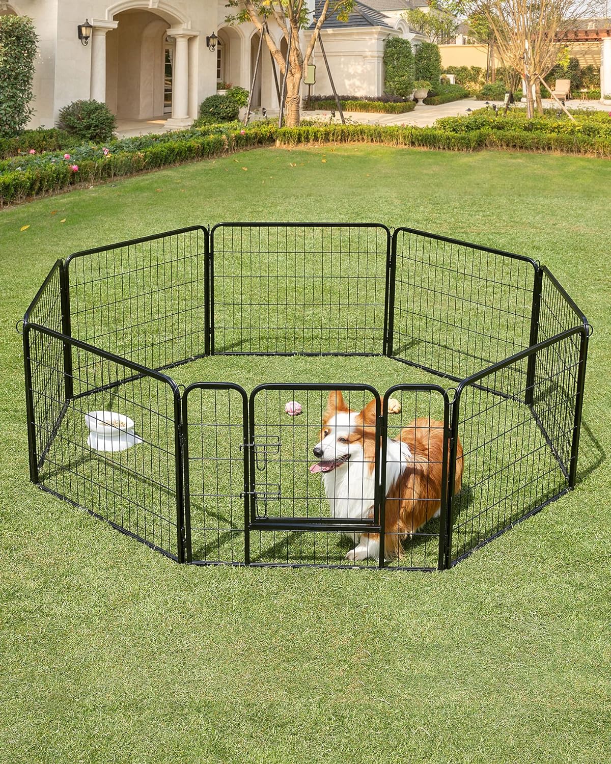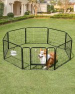 FEANDREA Tarc din panouri de fier pentru caini de talie medie, cu usa de acces, 163x163x60cm, gri