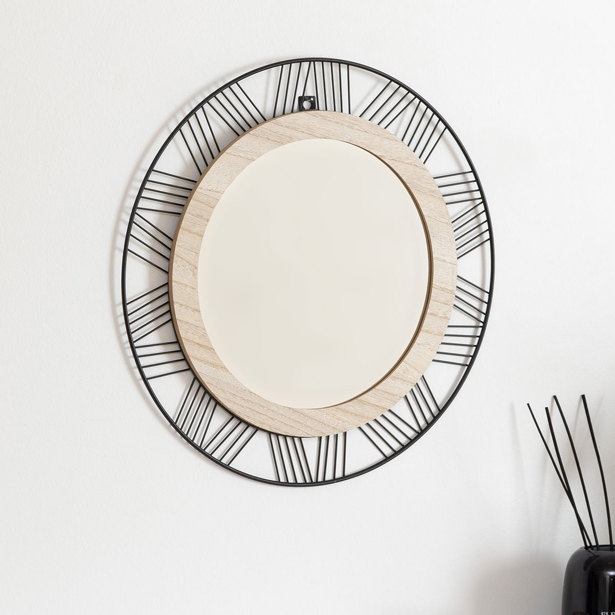Oglinda rotunda Atmosphera Joe cu cadru metalic, 45 cm, negru