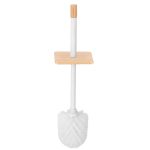 Perie WC cu rezervor detasabil si capac, din metal si bambus, 40 cm, alb