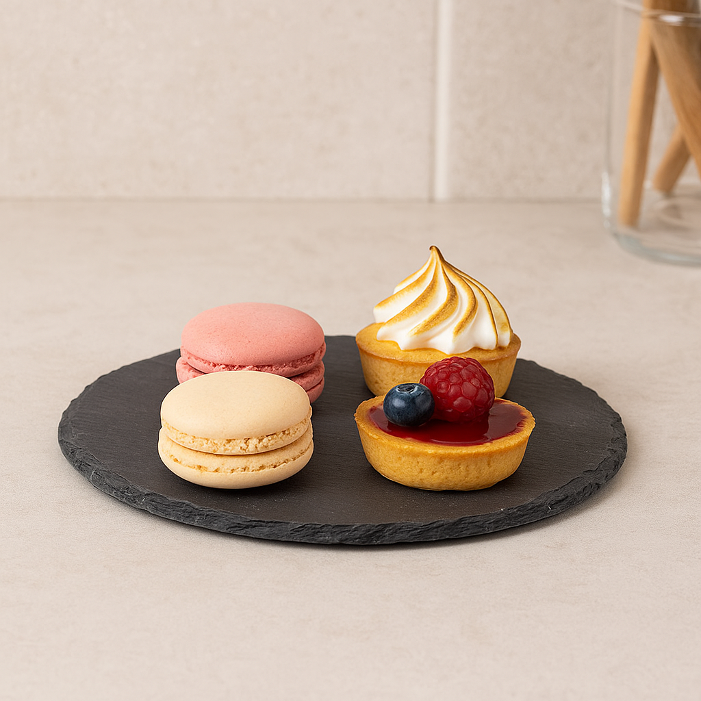 Specificatii tehnice Marca: Atmosphera Culoare: Negru Dimensiuni produs: Ø22 x H0,5 cm Greutate produs: 0.60 kg Material: Ardezie Scurta descriere Platoul de servire din ardezie de la Atmosphera imbina naturaletea materialelor brute cu eleganta moderna. Perfect pentru servirea aperitivelor, branzeturilor sau deserturilor, ofera un contrast vizual placut datorita suprafetei sale negre mate. Compact si rafinat, este ideal pentru mesele cu stil sau prezentarile culinare sofisticate. Caracteristici principale Design simplu si elegant Fabricat din ardezie naturala rezistenta Suprafata texturata cu aspect autentic Perfect pentru servirea branzeturilor si deserturilor Usor de curatat si intretinut