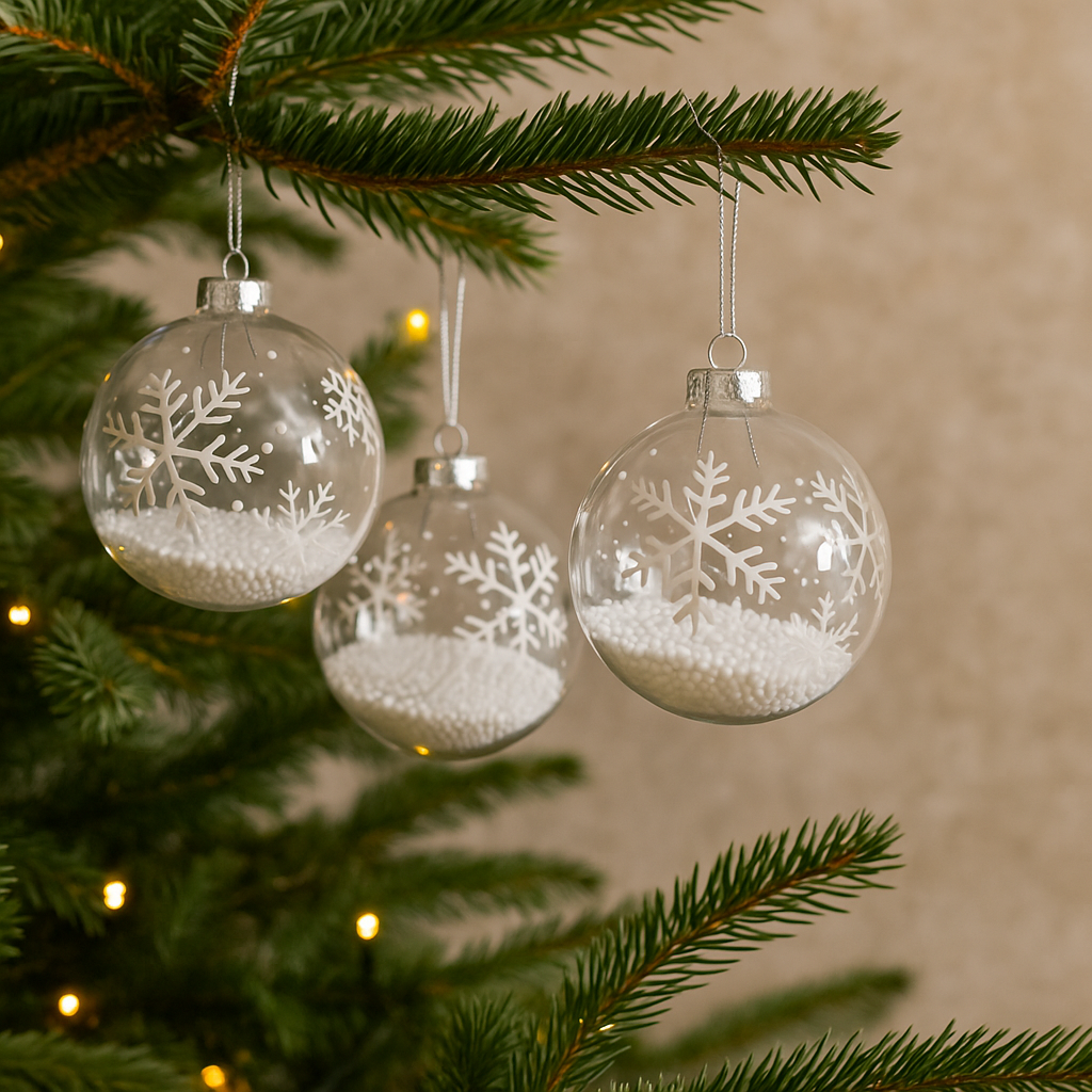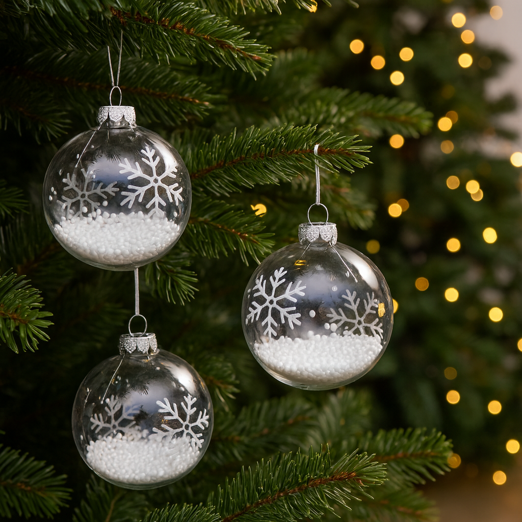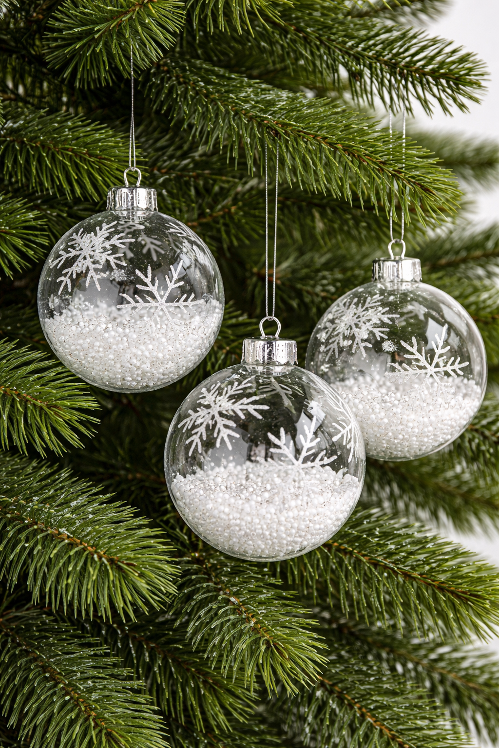 Prima pagină Iarna Globuri de Craciun Set 3 globuri Craciun din sticla, diametru 8 cm, transparente