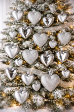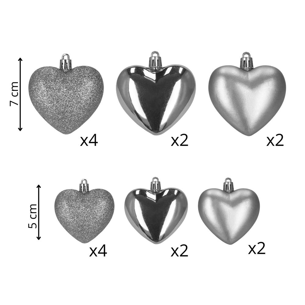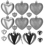 Set globuri decorative in forma de inima, 16 bucati, plastic, 4-7 cm, argintiu