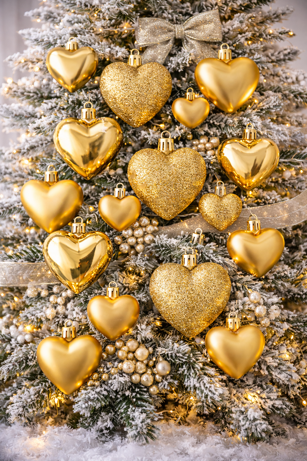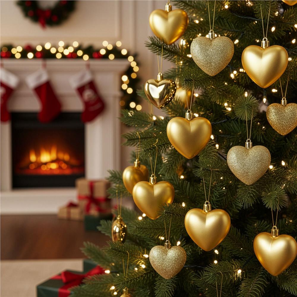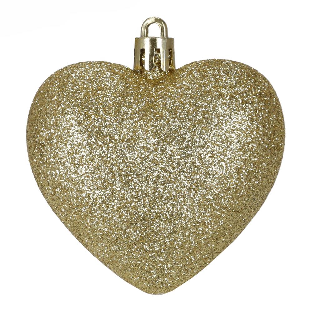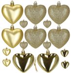 Set globuri decorative in forma de inima, 16 bucati, plastic, 4-7 cm, auriu