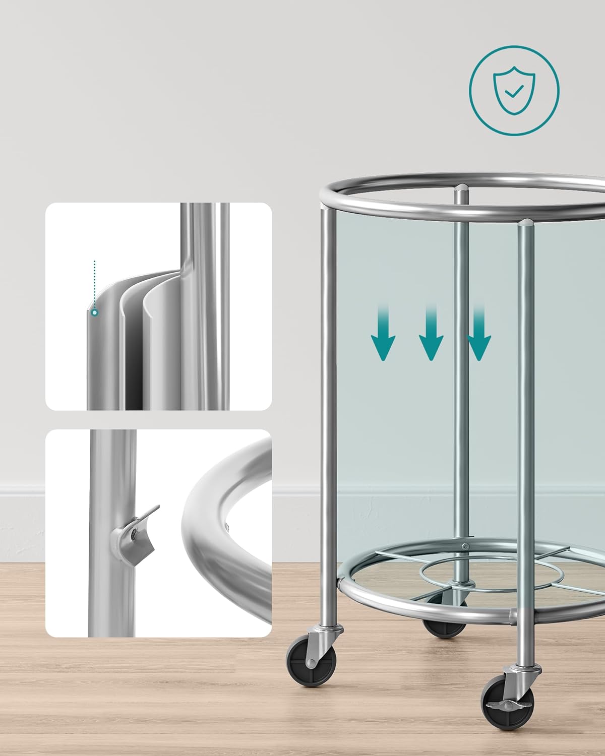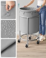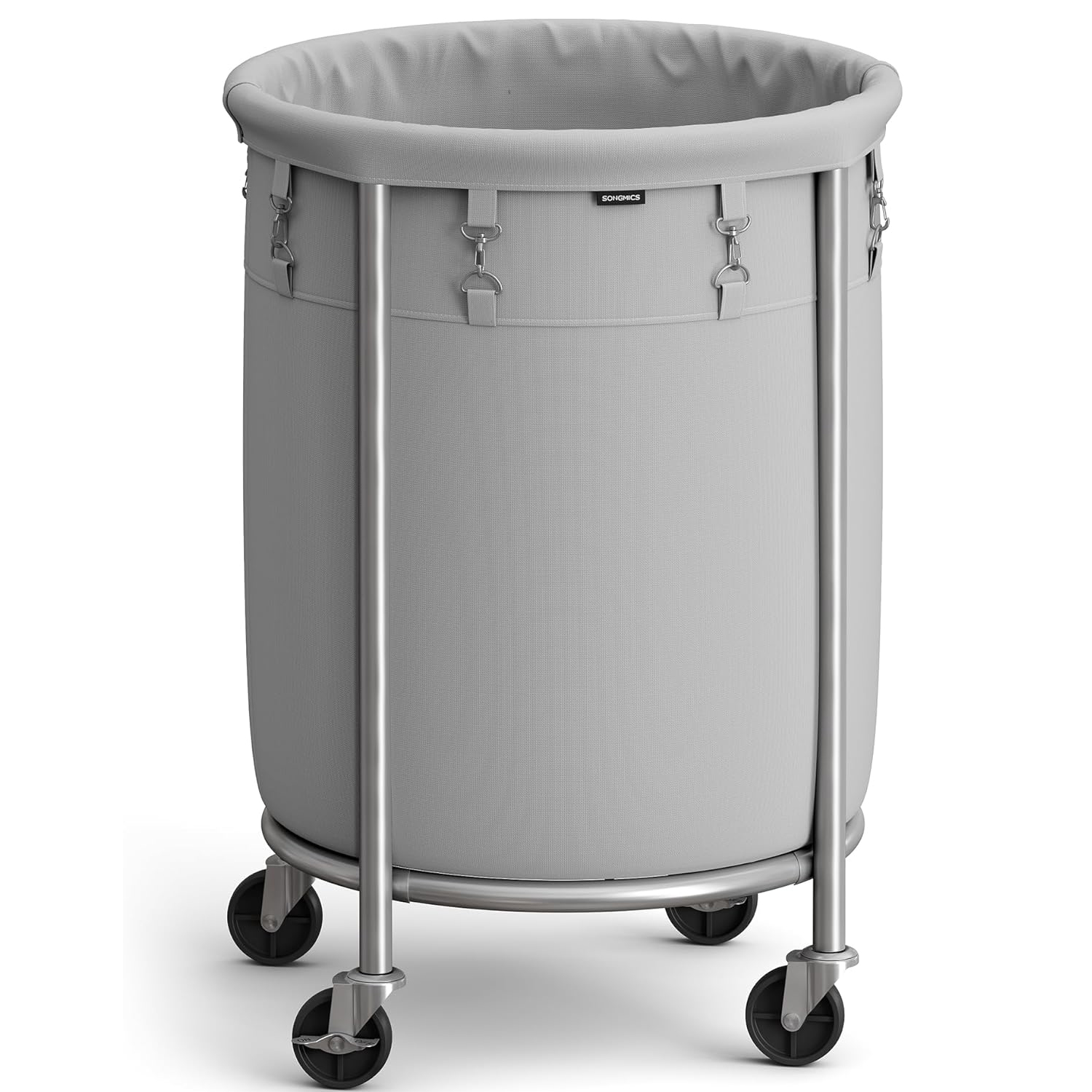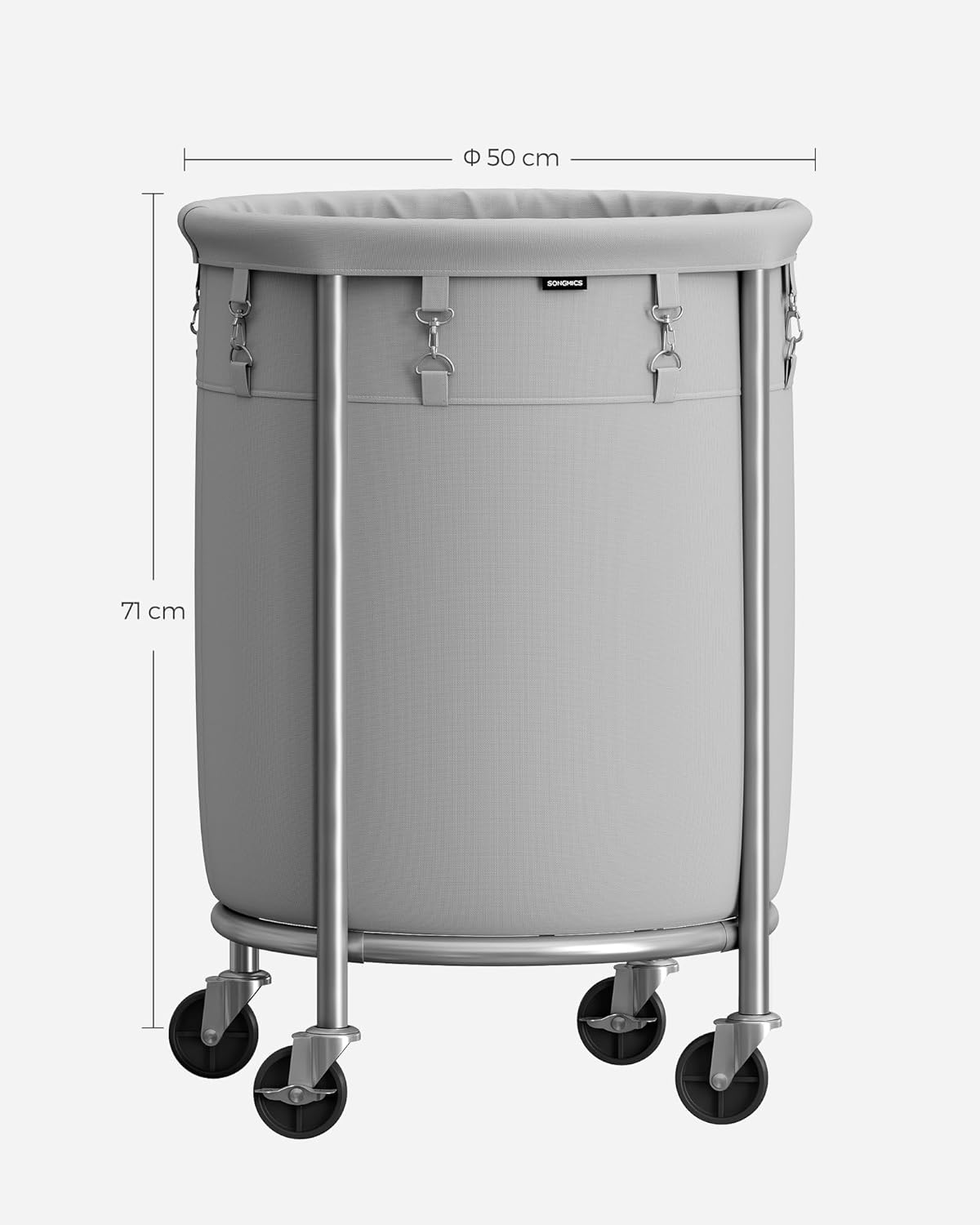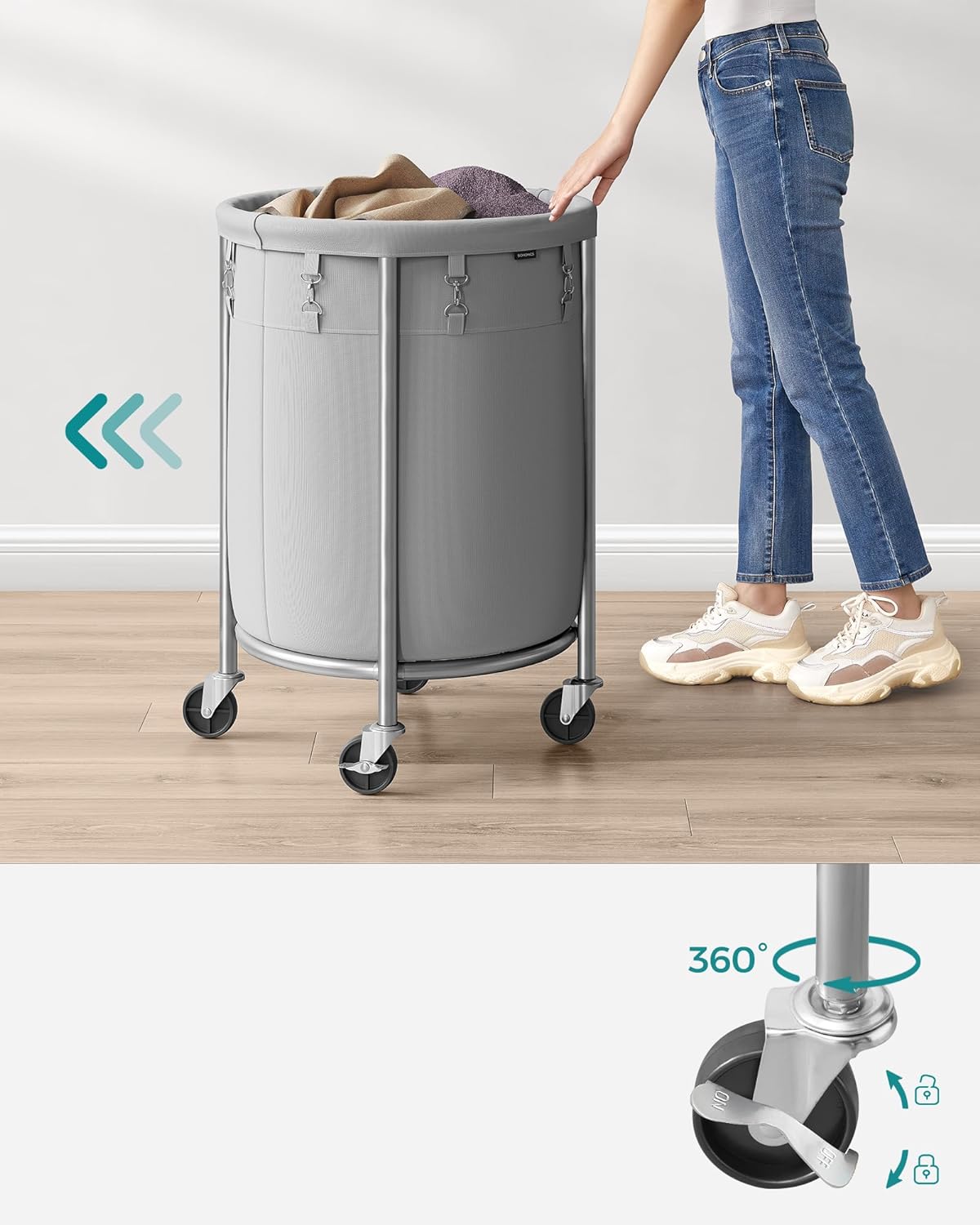 SONGMICS Cos de rufe rotund cu roti, cadru din otel, sac de rufe detasabil, 110 litri, gri