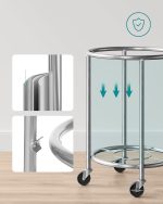 Specificatii: Culoare: Gri, argintiu Material: Otel, tesatura din poliester 600D Dimensiunea produsului: 50 x 71 cm (Dia. x H) Greutatea produsului: 4,2 kg Max. Sarcina statica: 20 kg Despre acest articol Cosul de rufe are 50 x 71 cm (diametru x inaltime) si ofera suficient spatiu de depozitare (110 litri) pentru a depozita toate rufele unei familii timp de o saptamana.Constructia cosului de rufe este realizata din tuburi de otel si este intarita de piese in forma de U. Datorita acoperirii cu pulbere, tuburile de otel sunt rezistente la apa si rugina. Geanta pentru rufe este fabricata din tesatura de poliester 600D de inalta calitate si este echipata cu o suprafata interioara impermeabila din PVC. Datorita elementelor de fixare, sacul nu cade si este, de asemenea, usor de indepartat.Usor de mutat: Datorita celor 4 roti rezistente (2 dintre ele cu frana), puteti impinge cu usurinta cosul de rufe din dormitor pana in spalatorie sau il puteti fixa intr-un singur loc. Datorita pieselor marcate si a instructiunilor usor de urmat, puteti asambla cu usurinta cosul de rufe.