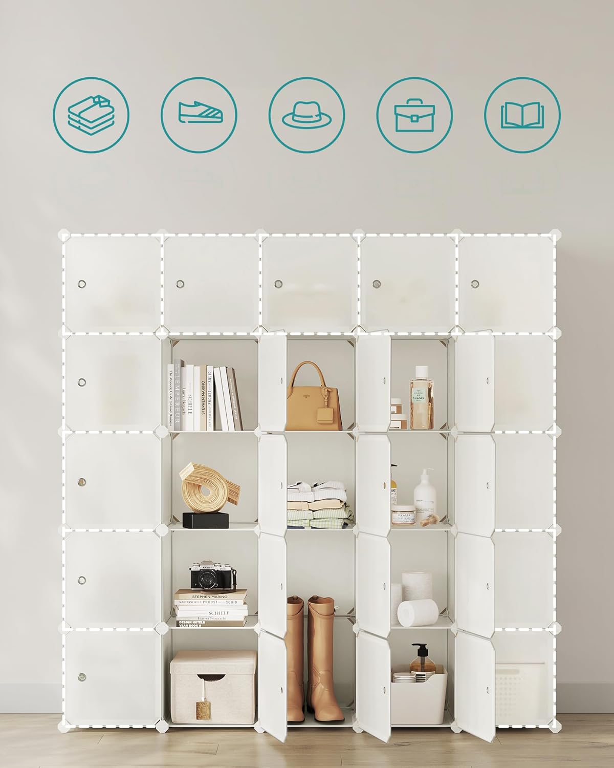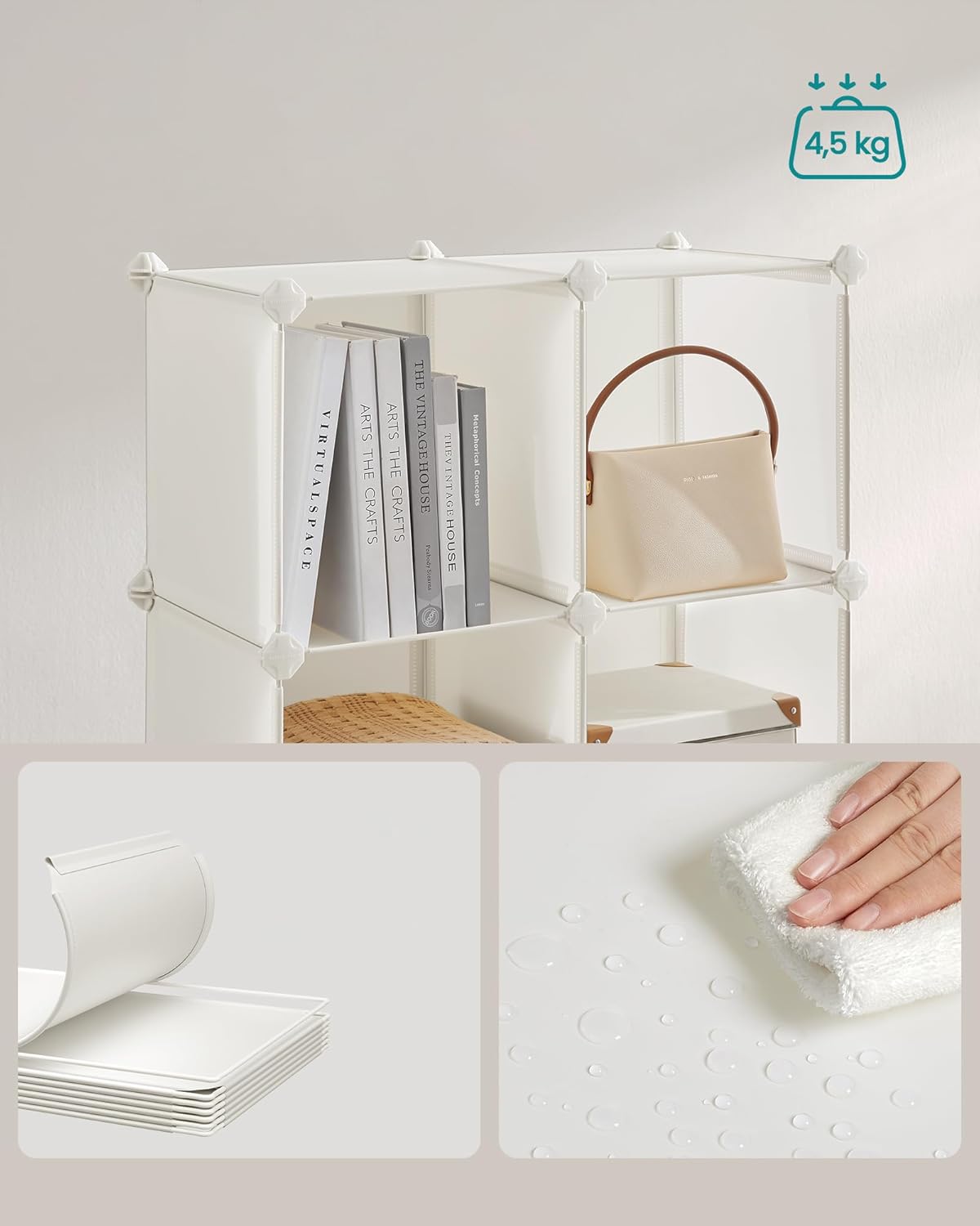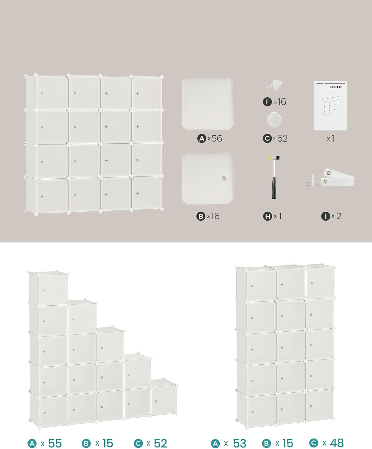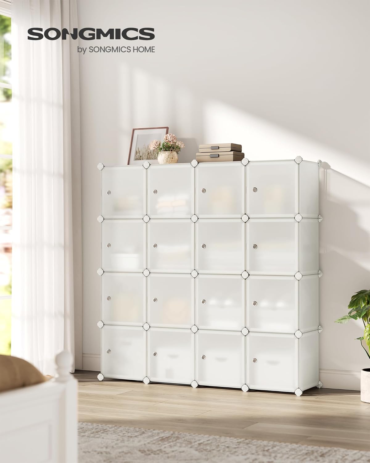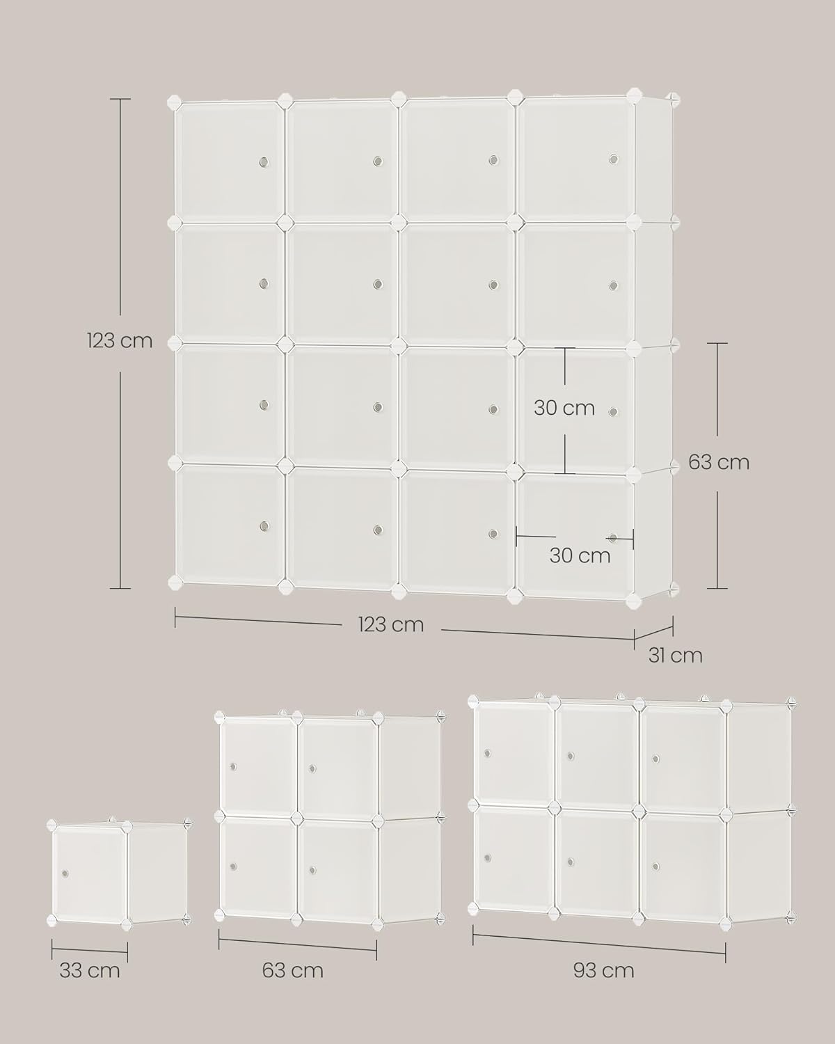 SONGMICS Dulap modular cu 16 cuburi si usi, cadru metalic, asamblare usoara, 123x123x31 cm, crem