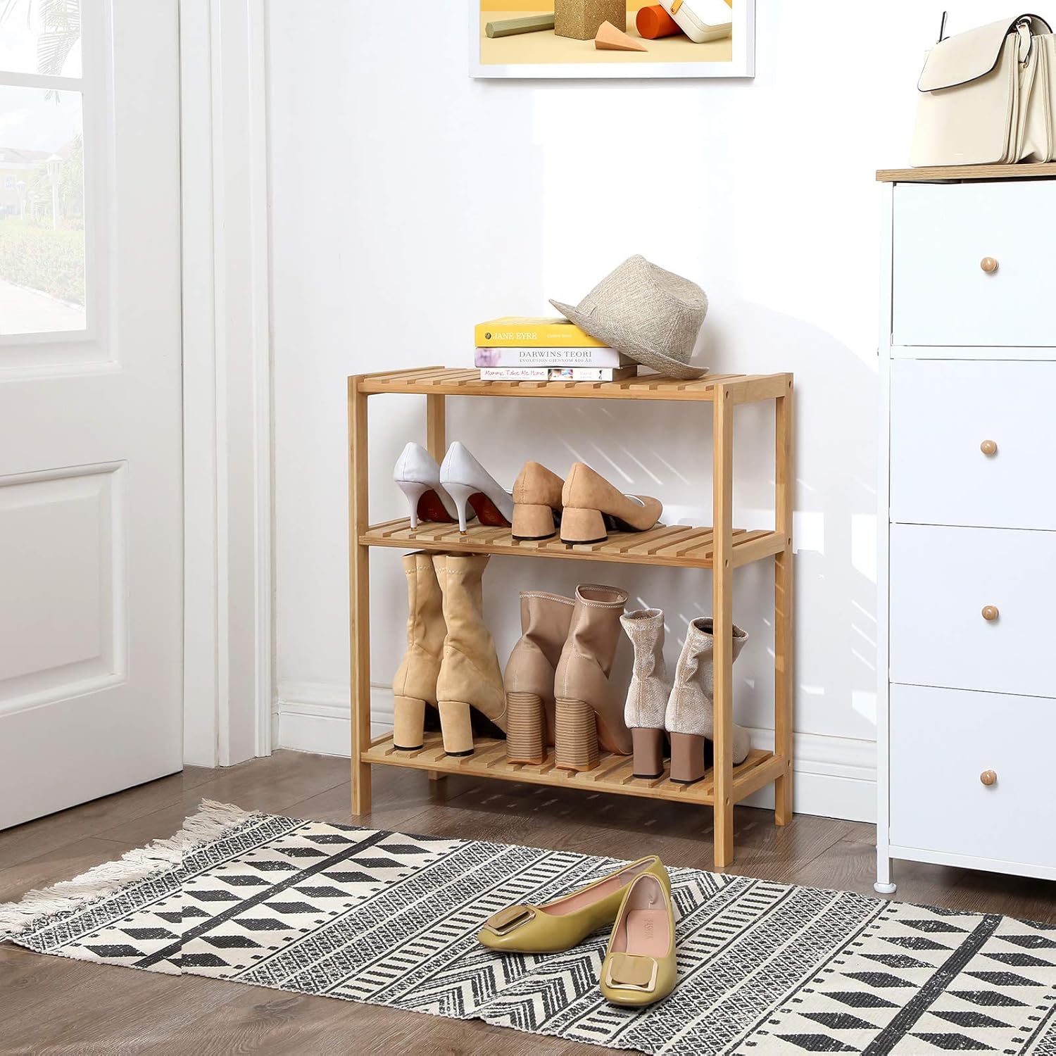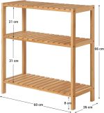 SONGMICS Raft de depozitare din bambus, cu 3 niveluri, 60x26x66 cm, maro