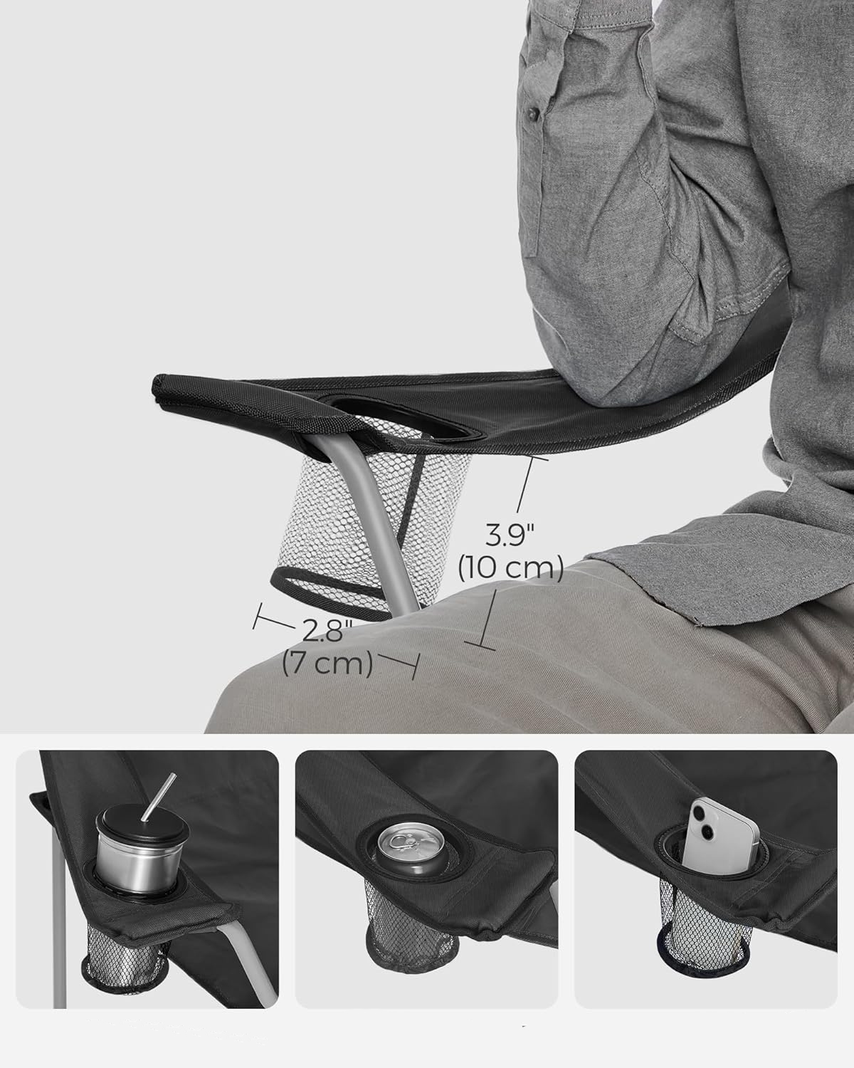 SONGMICS Set 2 scaune pliabile camping cu suport bauturi, husa transport, 52x84x81 cm, 120 kg, negru