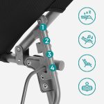 Specificatii: Culoare: Negru Material: Otel, tesatura sintetica Dimensiunea produsului: 193 x 53 x 29 cm Dimensiune pliat: 17 x 53 x 73 cm Greutatea produsului: 7,1 kg Max. Capacitate de incarcare statica: 150 kg Despre acest articol Atunci cand este pliat, acest sezlong masoara doar 17 x 53 x 73 cm, ceea ce il face convenabil de adus la piscina sau pe terasa. Cele doua manere il fac usor de transportat.Acest sezlong are un spatar reglabil cu 4 pozitii de inclinare si o tetiera detasabila. Pur si simplu reglati-l in pozitia preferata.Acest sezlong, cu o tesatura sintetica respirabila, impiedica umezeala sa se ataseaze de scaun. Relaxati-va in voie, chiar si in timpul celor mai fierbinti zile de vara. Acest sezlong are o umbrela de soare, care va permite sa cititi reviste in curte in timp ce va bucurati de soare. Puteti regla cu usurinta unghiul parasolarului cu mana, fara a fi nevoie sa va ridicati.Acest sezlong solid, cu cadrul sau din otel acoperit cu pulbere si articulatiile intarite, poate sustine pana la 150 kg si ramane stabil datorita picioarelor antiderapante.