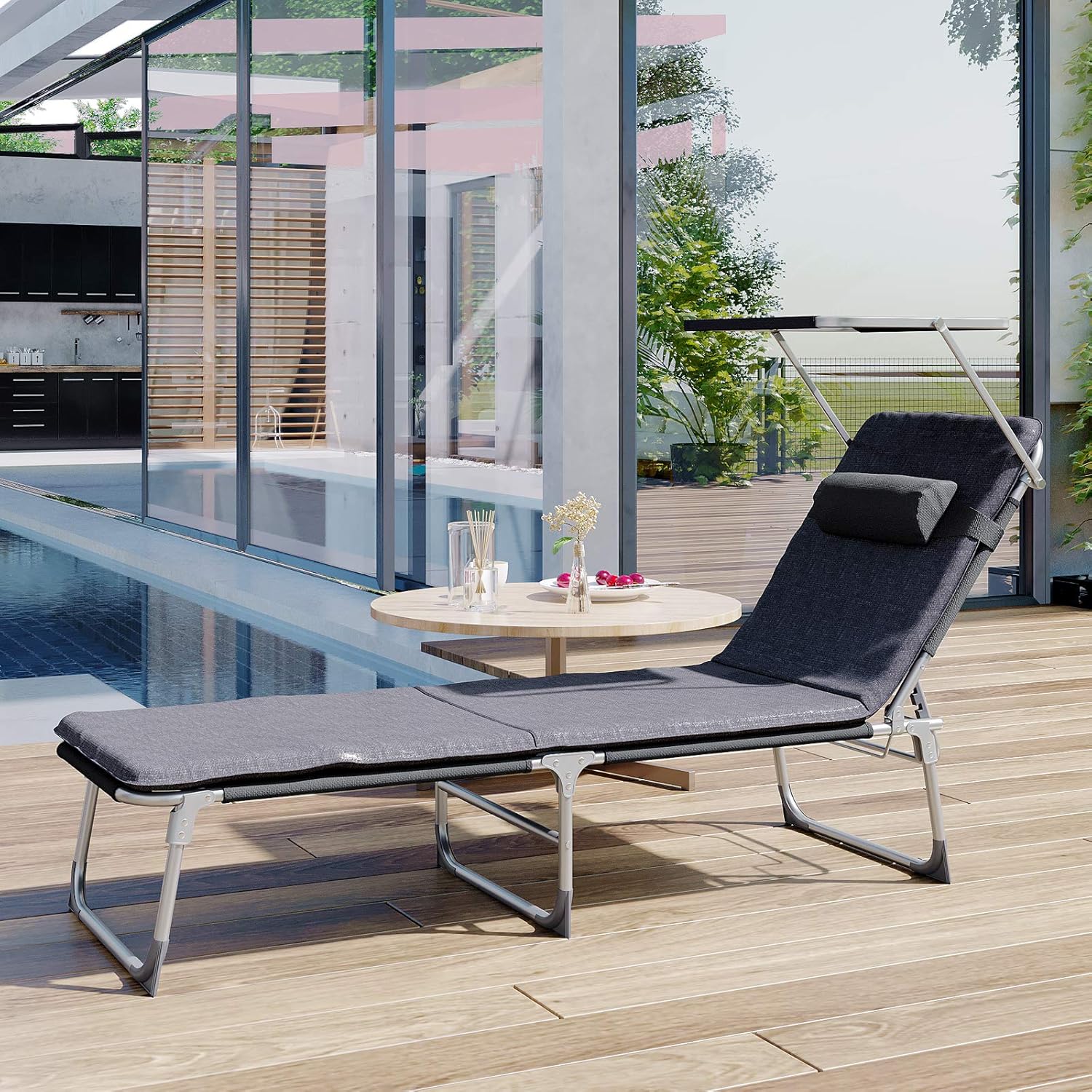 SONGMICS Sezlong pliabil, cu saltea groasa si tetiera, spatar reglabil, maxim 150kg, 183x60x39cm, gri