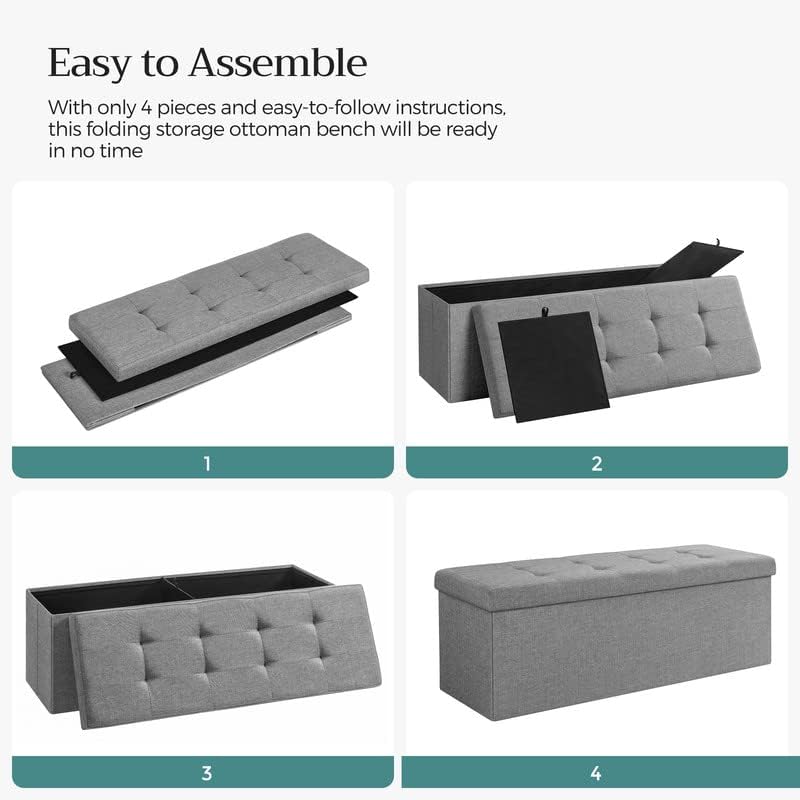 Prima pagină Casă SCAUNE Tabureti si fotolii SONGMICS Taburet pliabil cu sezut moale, spatiu de depozitare 131litri, maxim 300kg, 110x38x38cm, gri