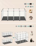SONGMICS Tarc animale mici modular cu placi de baza si covoras impermeabil, 145x73x57 cm, transparent