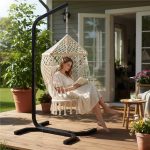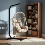 Suport leagan tip cuib sau hamac suspendat, cadru otel, maxim 180 kg, 92x92x205 cm, negru