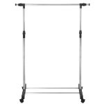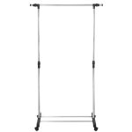 Suport pentru haine pe roti, reglabil pe inaltime si latime, din aluminiu cromat, 160x45x150cm, argintiu