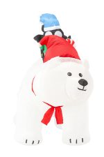 Urs polar gonflabil de exterior, iluminare LED, cu doi pinguini, compresor integrat, 200x120x80 cm, alb