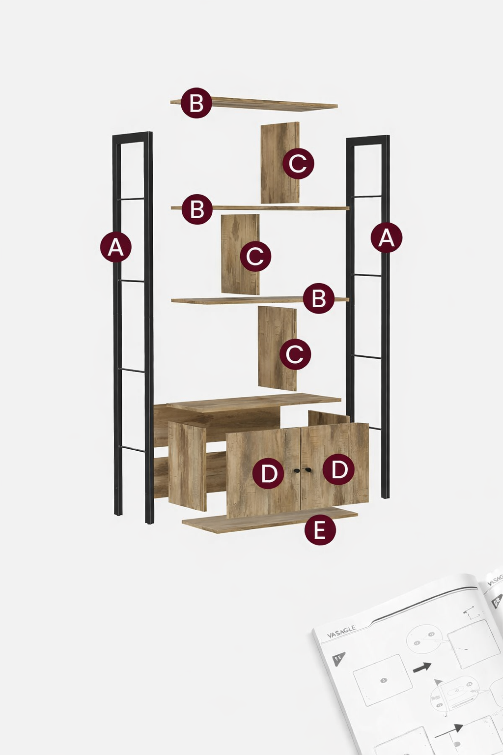 Specificatii tehnice Brand: VASAGLE Model: LBC022B50 Colectie: ALINRU Stil: Industrial Material: PAL si otel Finisaj cadru: Vopsit in camp electrostatic Culoare: Stejar toast si negru Compartiment inchis: Da, cu 2 usi Latime: 74 cm Adancime: 30 cm Inaltime: 155 cm Scurta descriere VASAGLE Biblioteca combina rafturile deschise cu un compartiment inchis pentru o organizare eficienta. Designul industrial imbina structura metalica neagra cu finisajul stejar toast, fiind potrivita pentru living sau birou. Rafturile ofera spatiu generos pentru carti, decoratiuni sau documente, iar dulapul inferior permite depozitarea discreta a obiectelor. Caracteristici principale Patru rafturi deschise pentru expunere si organizare Compartiment inferior cu doua usi pentru depozitare ascunsa Structura metalica solida si durabila Rafturi rezistente din PAL de calitate Picioare reglabile pentru stabilitate pe orice suprafata Bare laterale pentru protectia obiectelor Include sistem anti-rasturnare pentru siguranta Design industrial potrivit pentru living sau birou Montaj simplu cu instructiuni incluse