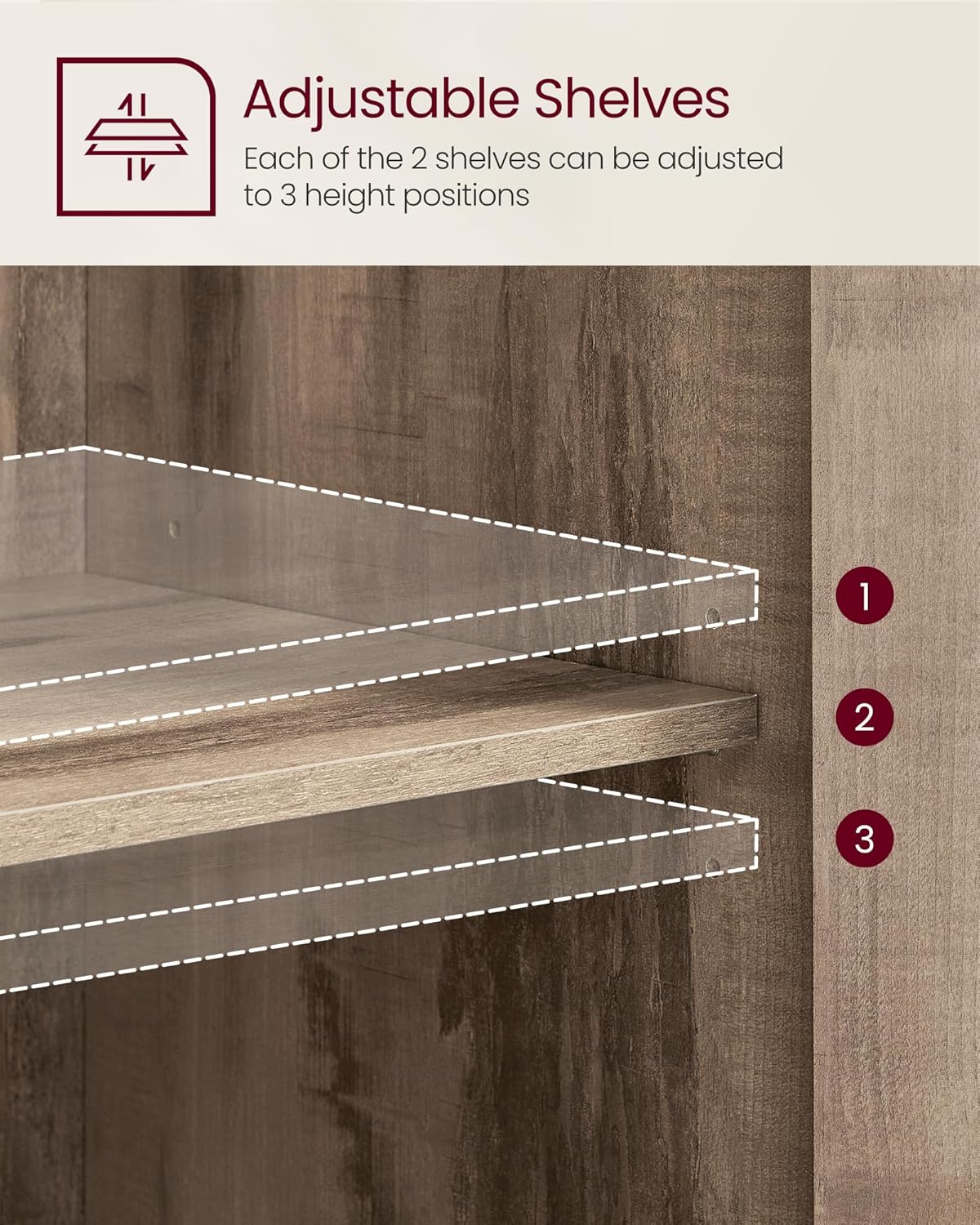 VASAGLE Dulap bucatarie cu 3 usi, rafturi reglabile, cadru metalic, stil industrial, 100x35x75 cm, maro
