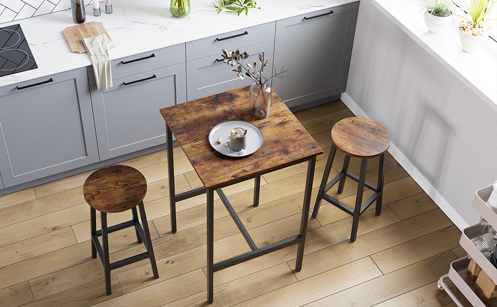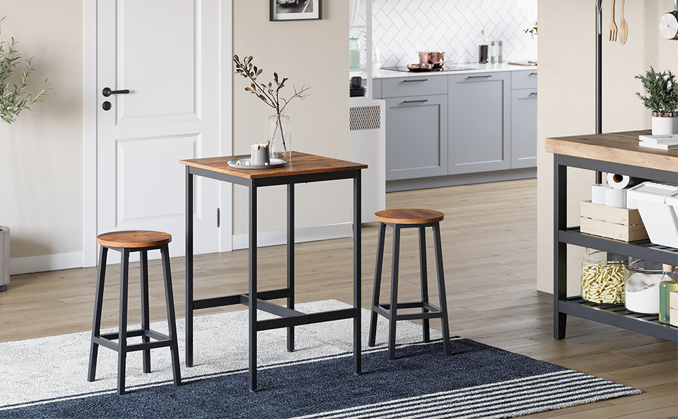 VASAGLE Masa de bar pentru bucatarie, patrata, inalta, cadru de otel, 60x60x92cm, stil industrial, maro rustic si negru