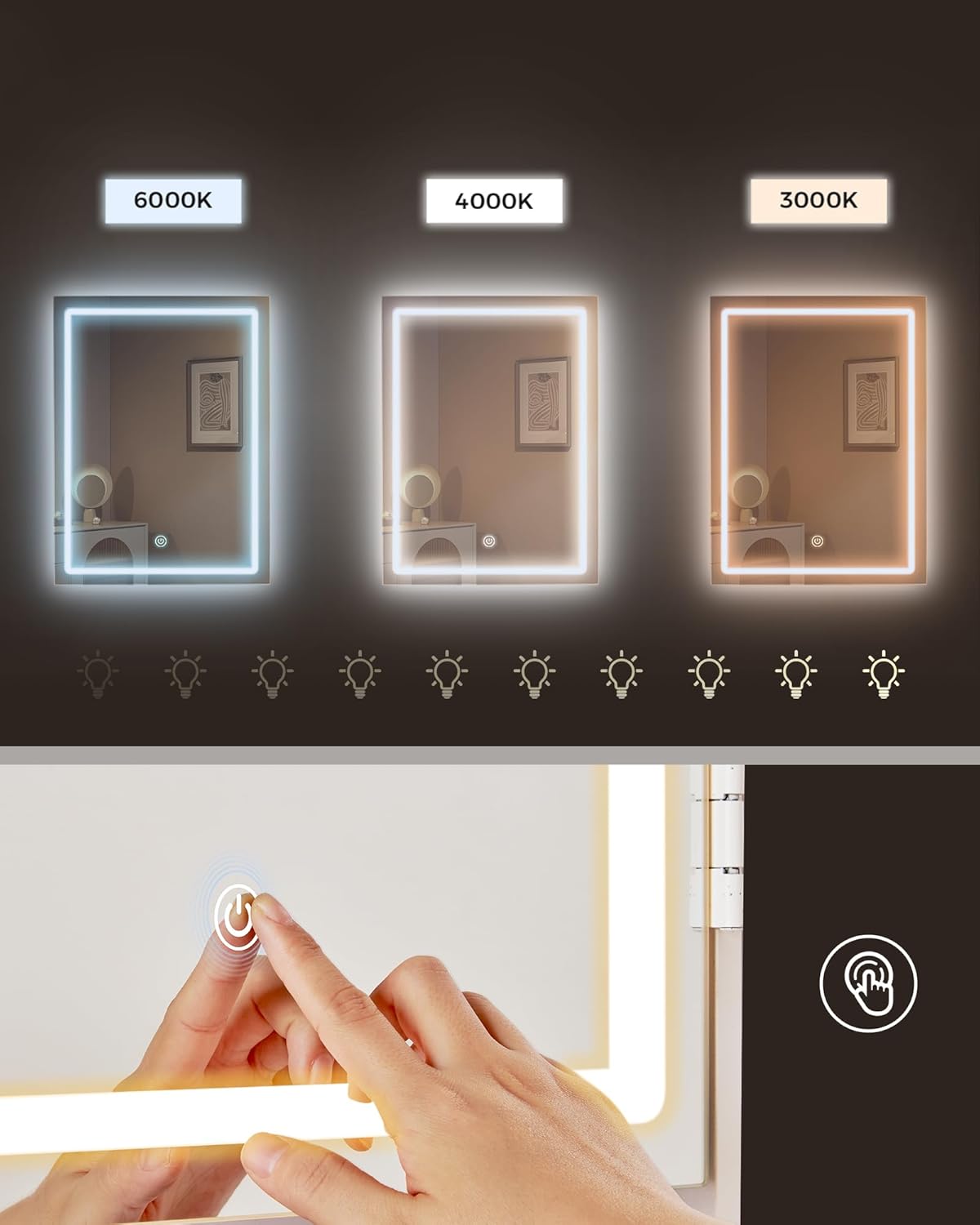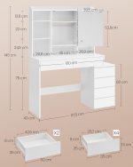 Aceasta piesa de mobilier este perfecta pentru dormitor, fiind un loc practic pentru machiaj, coafura, ingrijirea zilnica a frumusetii sau pentru a depozita o varietate de obiecte. Caracteristici: Culoare: Alb noros Dimensiuni: 40 x 117,5 x 145 cm Marca: VASAGLE Iluminare reglabila ca intensitate si culoare Material: PAL Nota: Va rugam sa atasati aceasta masa de toaleta pe perete cu protectia anti-inclinare inclusa pentru a crea un mediu de utilizare sigur. Iluminare LED reglabila: Apasati comutatorul timp de cateva secunde pentru a regla intensitatea, apasati scurt pentru a schimba culoarea luminii. Puteti regla iluminarea LED in functie de nevoile dvs. pentru a obtine un machiaj perfect. O multime de spatiu: Un raft superior, 7 compartimente deschise, 2 sertare mari, 2 carlige in spatele oglinzii, un blat de masa mare si un dulap cu 4 sertare. Aceasta masuta de toaleta ofera mult spatiu de depozitare – totul are locul sau. Rafturi reglabile: Cele 2 rafturi de pe partea stanga si raftul din mijlocul partii drepte sunt fiecare reglabile in inaltime in 3 niveluri, ceea ce va permite sa depozitati cu usurinta lucruri de diferite dimensiuni. Solid si usor de curatat: Fabricata din PAL de inalta calitate, masa este solida si durabila; suprafata este rezistenta la uzura si usor de curatat, permitand utilizarea indelungata. Simplu si modern: Designul curat, liniile clare si albul elegant fac din aceasta masa de machiaj moderna un accesoriu elegant pentru dormitorul sau dressingul dvs.