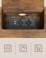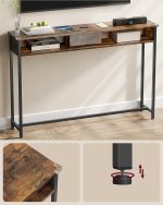 VASAGLE Masa tip consola ingusta, cu 2 prize si 2 porturi USB incorporate, 120x25x81 cm, maro rustic
