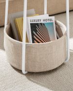VASAGLE Masuta de cafea rotunda cu cos de stofa, stil modern, 45x50cm, alb cu bej
