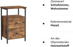 VASAGLE Noptiera cu 2 sertare pentru dormitor