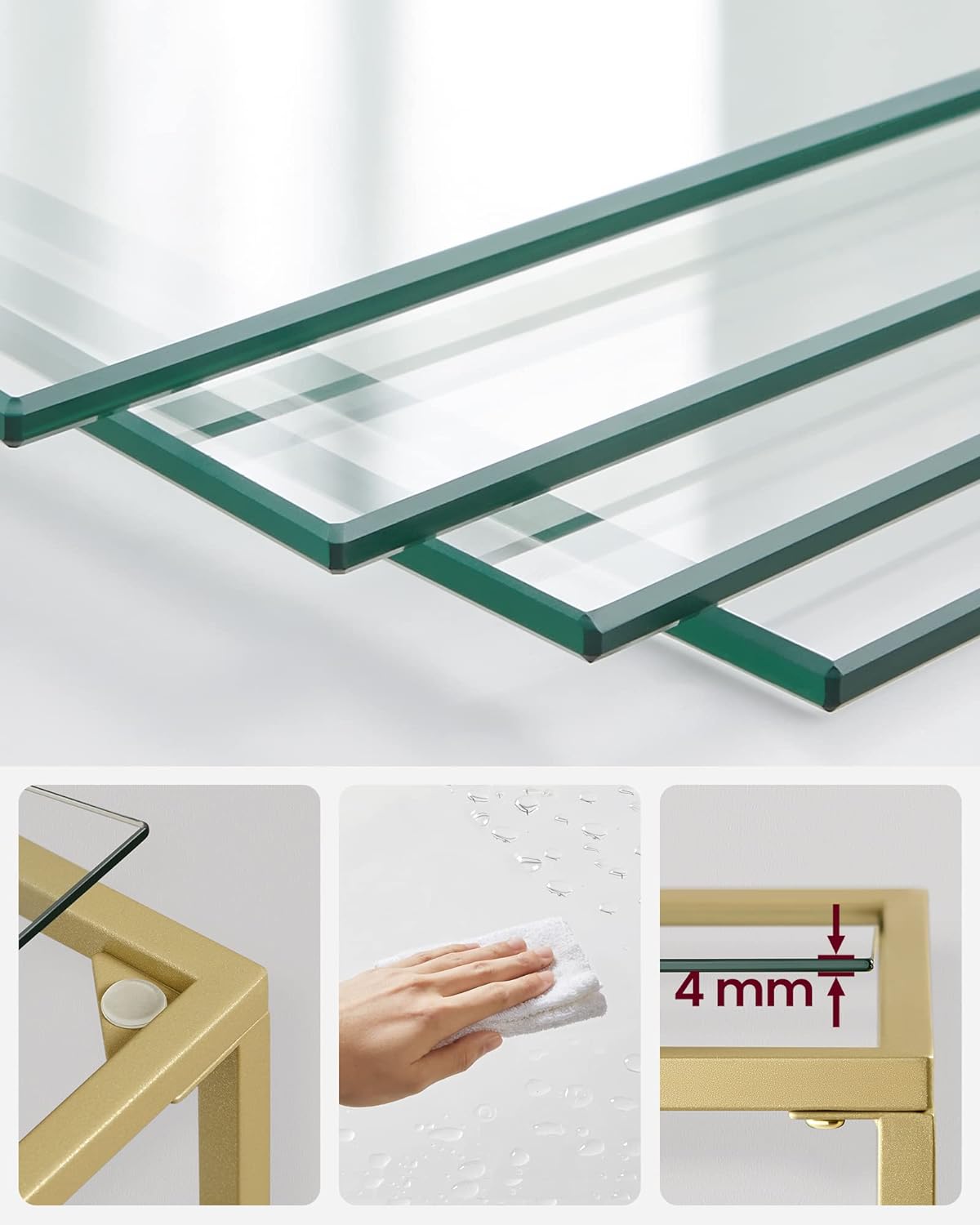 Tip camera Birou, Dormitor Numar de rafturi: 5 Dimensiuni produs: 30D x 124,5W x 40H cm Marca: VASAGLE Asamblare necesara: Da Despre acest articol Casa ta merita un pic de lux: linii drepte, panouri de sticla si un cadru de otel auriu… plaseaza acest raft simplu, dar elegant in casa ta si creeaza o ambianta luxoasa.Stabil si durabil: Cu cadrul robust din otel si rafturile din sticla securizata premium, aceasta unitate stabila de rafturi cu scara suporta pana la 10 kg pe nivel. Picioarele reglabile incluse si dispozitivele anti-rasturnare sporesc stabilitate.Versatila: Aceasta polita de sticla functioneaza bine in baie pentru prosoape, in birou pentru carti, in sufragerie pentru decoratiuni sau in bucatarie pentru vasele tale!Usor de asamblat: piesele numerotate si instructiunile usor de urmat fac ca asamblarea acestei unitati de rafturi cu 5 niveluri sa fie o usoara.Ce primesti: o unitate de raft care economiseste spatiu (40 x 30 x 124,5 cm), dispozitive anti-rasturnare pentru stabilitate si instructiuni ilustrate pentru asamblare usoara.