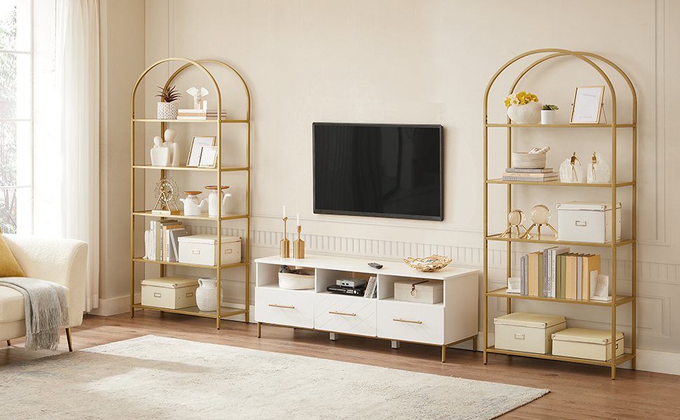 Culoare: ton auriu Material: sticla calita, otel Dimensiune: 83 x 30,2 x 183,5 cm (L x l x H). Greutate: 21,9 kg. Max. Capacitate de incarcare statica pe nivel: 10 kg Continutul cutiei: 1 x raft, 1 x pachet de accesorii, 1 x protectie impotriva inclinarii, 1 x instructiuni (limba engleza nu este garantata) Despre acest articol Comorile tale ar trebui sa fie aratate pe un suport care sa fie demn de ele, la fel ca acest raft de depozitare; cu designul sau sic, in forma de arc si rafturile din sticla transparenta inconjurate de otel de culoare aurie, va evidentia tot ceea ce pretuiesti 5x rafturi pentru orice: Aceasta unitate de rafturi de 30,2 x 83 x 183,5 cm are 5 rafturi largi, cu o distanta de 31,2 cm intre fiecare nivel, pentru a oferi o multime de spatiu pentru bijuterii, carti, rame foto, vaze si multe altele. Suport ferm, sustine constant: Rafturile din sticla securizata cu grosimea de 5 mm, cu tampoane anti-alunecare, pot sustine in mod stabil 10 kg fiecare; picioarele reglabile mentin raftul de carti echilibrat; un kit anti-rasturnare ofera un plus de stabilitate Practic in orice camera: Pentru decoratiuni in camera de zi, documente in birou, cosuri de depozitare in dormitor, cosuri de gunoi in bucatarie sau chiar articole de toaleta in baie – acest suport de depozitare face totul datorita sticlei rezistente la apa si ruginii. otel rezistent Usor de asamblat: Piesele numerotate si instructiunile usor de urmat va vor ajuta sa asamblati rapid aceasta unitate de rafturi, astfel incat sa va puteti arata decorul pe rafturi la timp.