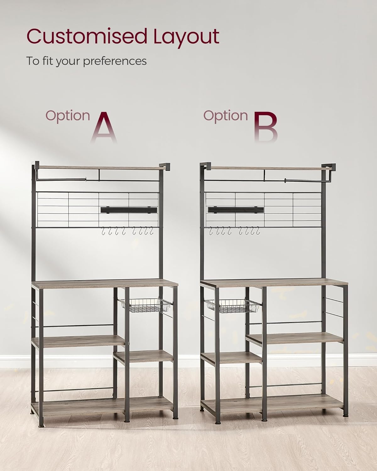 VASAGLE Raft de bucatarie cu spatiu pentru cuptorul cu microunde, banda magnetica cutite, suport role de bucatarie, 42x90x167cm, gri