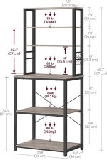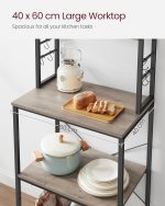 VASAGLE Raft de bucatarie, spatiu cuptor cu microunde, 6 rafturi, 40x60x167cm, gri si negru