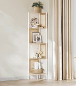 Detalii despre produs: Culoare: Bej Material: Otel, MDF (panouri din fibre de densitate medie), ratan PP (polipropilena) Dimensiuni: 31,9 x 31,9 x 156,4 cm (P x L x I) Greutate: 7,9 kg Capacitate maxima de incarcare statica pe nivel: 10 kg Despre acest articol Tuburile de otel simple se intalnesc cu aspectul de rattan – acest raft de colt simplu adauga o nota naturala si confortabila casei dvs. si aduce prospetime in orice colt. Masurand 31,9 x 31,9 x 31,9 x 156,4 cm, biblioteca ofera 5 rafturi pentru carti, rame de tablouri, plante si elemente decorative. Datorita formei sale, se potriveste perfect in orice colt si economiseste spatiu.Fie ca doriti sa va evidentiati piesele preferate in camera de zi, sa creati o oaza de lectura in birou, sa infrumusetati colturile dormitorului sau sa aduceti mai multa ordine in bucatarie, raftul de colt raspunde tuturor nevoilor dvs.Panourile din MDF de inalta calitate combinate cu otelul rezistent creeaza un raft solid si durabil. Cu o capacitate de incarcare de pana la 10 kg pe nivel, va puteti expune toate piesele preferate.Usor de asamblat si usor de curatat: Datorita pieselor marcate si instructiunilor clare, asamblarea este floare la ureche. Panourile din MDF sunt usor de curatat, astfel incat raftul dvs. sa arate intotdeauna impecabil.