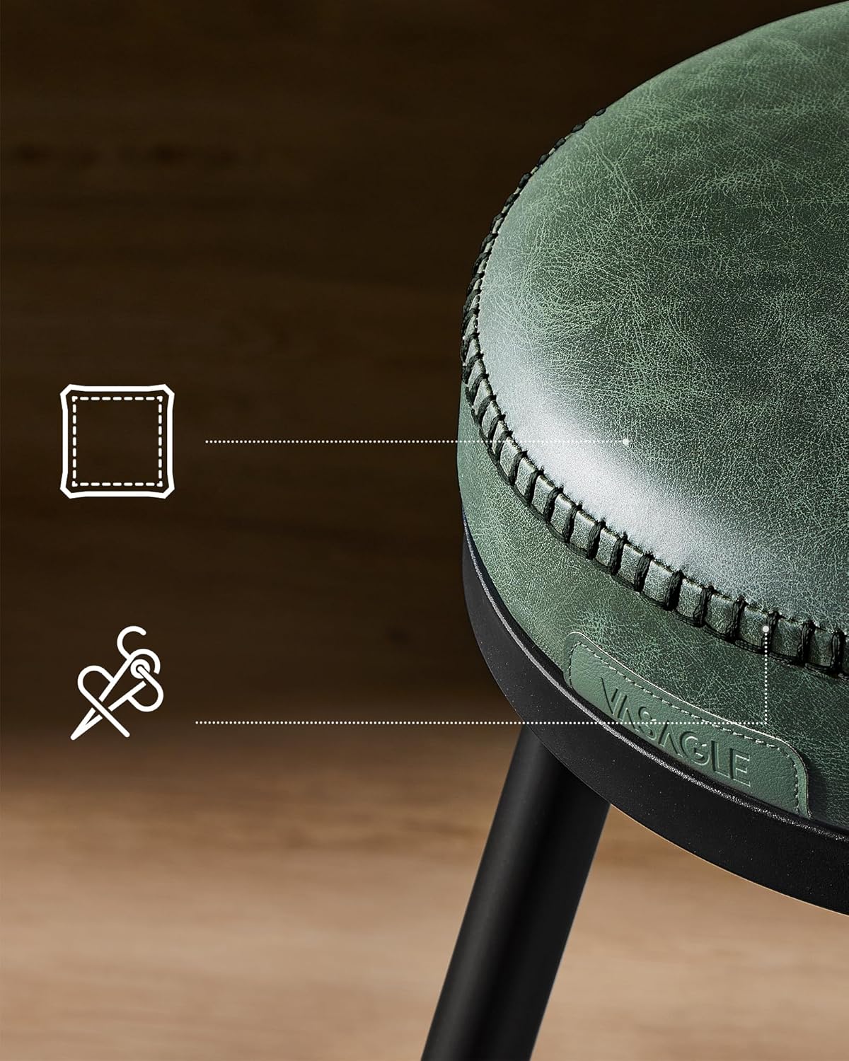 Specificatii tehnice: Brand: VASAGLE Model: LBC889C01 Colectie: EKHO Material sezut: Piele ecologica (PU), spuma turnata 58D Material cadru: Metal acoperit cu pulbere Culoare: Verde  Dimensiuni: 57x35x101 cm (L x l x H) Forma sezut: Rotund Stil: Mid-century modern Greutate maxima recomandata: 120 kg Numar produse in set: 2 Functii speciale: Sezut rotativ 360°, picioare cu protectie podea, picioare evazate Finisaj: Metal verde mat sau semi-lucios Scurta descriere: Acest set de 2 scaune de bar VASAGLE din colectia EKHO aduce rafinament si confort in orice spatiu. Designul rotativ 360°, spuma groasa si materialele durabile asigura atat estetica eleganta, cat si functionalitate. Ideale pentru barul de acasa, bucatarie sau zona de socializare. Caracteristici principale: Design mid-century cu detalii fine si linii elegante Sezut rotativ 360° pentru interactiune usoara Captuseala confortabila din spuma de 8 cm grosime Piele ecologica impermeabila si usor de curatat Picioare metalice stabile cu terminatii reglabile Protectie pentru podea impotriva zgarieturilor