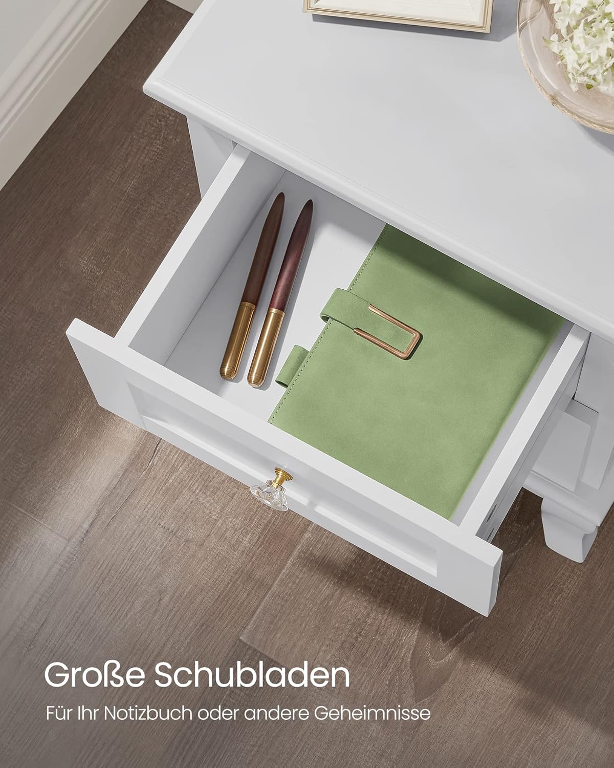 Descrierea produsului Aceasta noptiera de la VASAGLE este fabricata din MDF si lemn de inalta – calitate. Cu o linie simpla, este si practica datorita capacitatii sale de depozitare.Culoarea alba trezeste pe deplin sentimentul de elegant. In plus, este usor de asamblat. Puteti folosi doar o carpa umeda pentru a o curata. Specificatii: – Culoare: Alb- Material: MDF (placa de fibre de densitate medie), picioare din lemn de pin- Dimensiunea produsului: 38.5 x 30.5 x 52.5 cm (L x l x i)- Dimensiunea sertarului interior: 25 x 23 x 12 cm (L x l x i)Continutul pachetului:- 2 x noptiera- 1 x Instructiuni Note VASAGLE: – Nu va asezati pe articol pentru a evita deteriorarea produsului, deoarece este fabricat din MDF si lemn.- In timpul procesului de asamblare a picioarelor mesei, va rugam sa aliniati mai intai toate suruburile cu gaurile pre-forate aferente si, ulterior, strangeti suruburile unul cate unul. Simplu, dar elegant : Designul unic al acestui set de noptiere cu o vopsea alba, non-toxica, cu intarire UV, apare bogat in elemente europene, oferind in acelasi timp camerei dvs. un stil foarte modern, romantic Calitatea nu se pierde : Blatul mesei din MDF de 38,5 x 30,5 x 52,5 cm este sustinut ferm de picioarele din lemn masiv de pin; de asemenea, placutele anti-alunecare de pe fiecare picior inferior va protejeaza podeaua de zgarieturi Mai mult spatiu : Cu 2 sertare mai mari (25 x 23 x 12 cm), noptiera noastra ofera spatiu suplimentar de depozitare pentru a ascunde obiectele pe care nu doriti sa le vedeti; datorita blatului lat, lampa, tablourile sau chiar cartea de citit vor avea aici un loc suficient Economisiti timp : Au disparut zilele in care va petreceti dupa-amiaza asambland mobilier; cu instructiuni detaliate, va veti relaxa langa aceasta noptiera inainte sa va dati seama Ce primiti : Doua noptiere cu 2 sertare si instructiuni simple va permit sa afisati lampa si sa depozitati cat mai repede lectura de culcare, ochelarii si alte lucruri esentiale